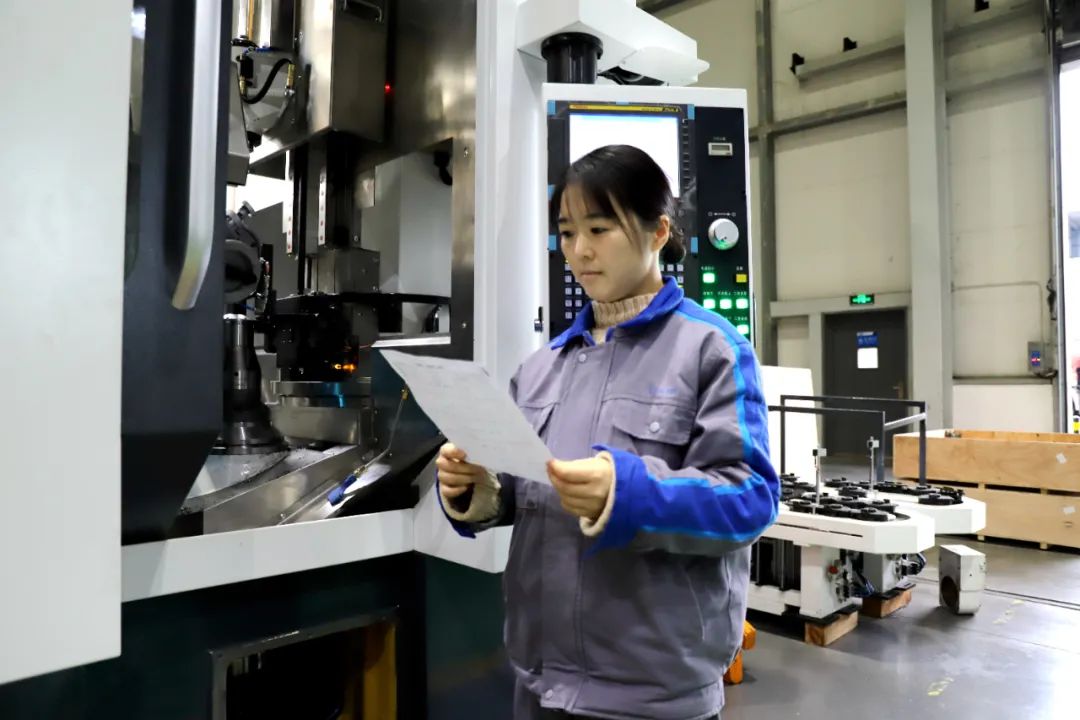 她们肩负着滚刀轴台、端面、刻字、开刃、磨齿等多道关键工序,面对新材料加工工艺,采用传统工具难以切削,刀具磨损快成本高,同时对加工精度要求极高。为了解决这一难题,她们迎难而上,通过优化切削速度、进给量和冷却液使用等工艺参数,提升技术水平,精细操作,成功将加工效率提升了2倍,保证了产品质量。